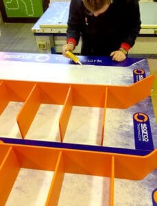 Realizzazione di espositori da banco e da terra per la linea di calzature antiinfortunistiche “Sparco Team Works”